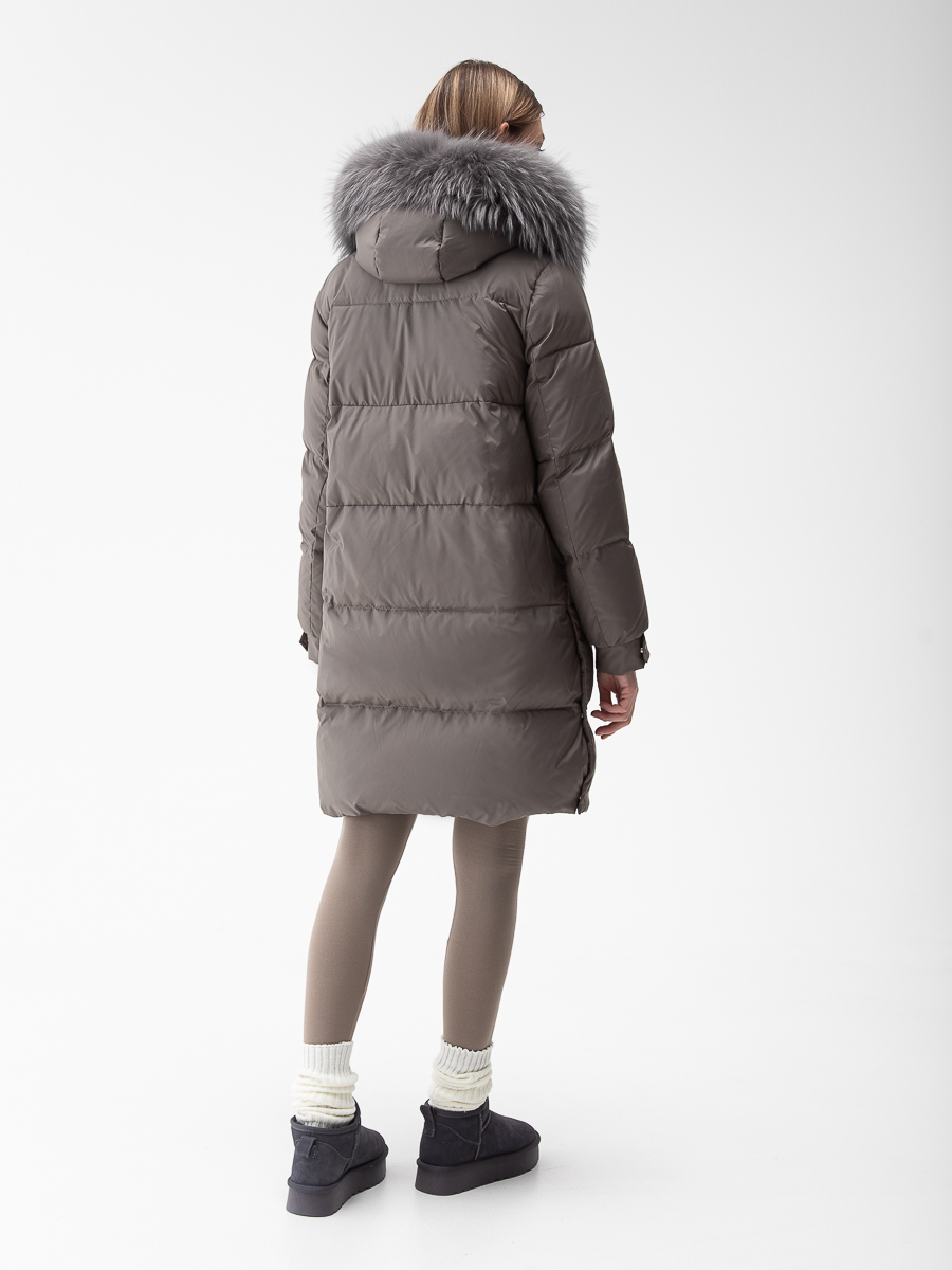 Крой воротника - съёмный капюшон, отделка енот
