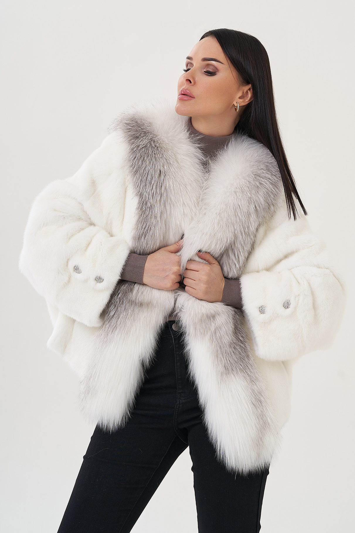 Тип ворота - V - образный воротник , отделка песец